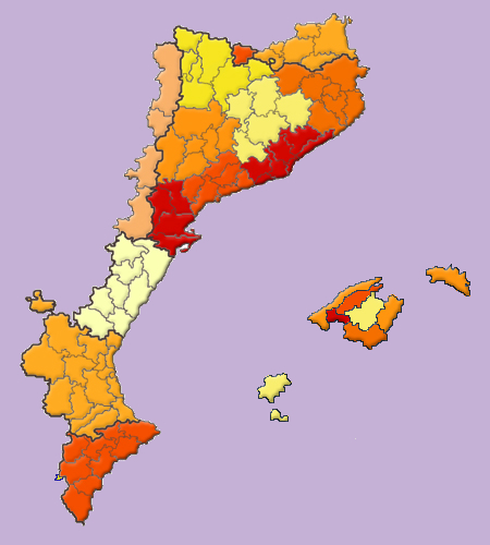 - Hem aprofitat la tasca feta per Cercabloc.cat, hem fet algunes esmenes i hem afegit al seu mapa comarcal alguns detalls que hi havíem trobat a faltar, com ara la zona del Carxe (Múrcia).